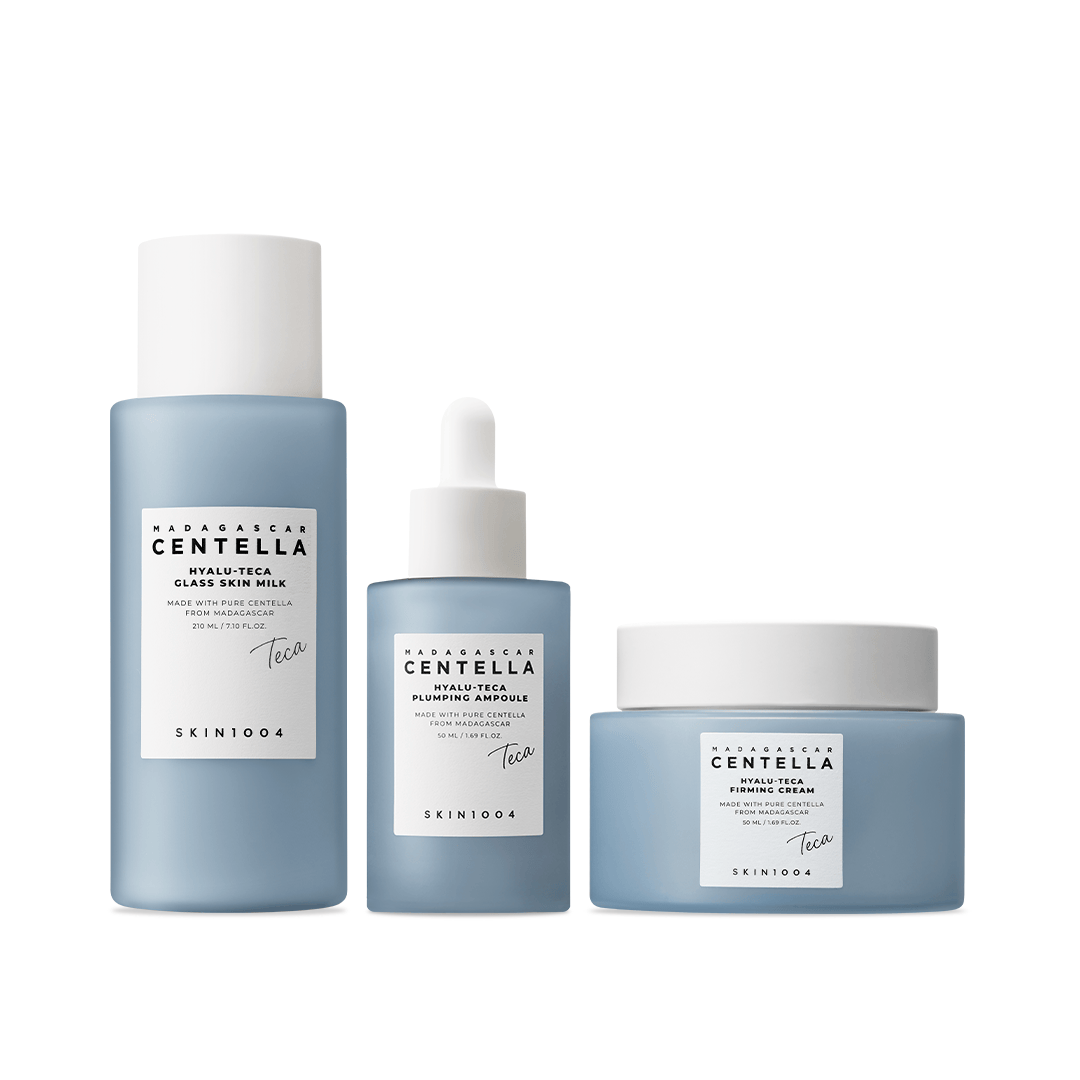 A complete skincare routine with HYALU-TECA™ that deeply hydrates, builds moisture volume, and reinforces elasticity to create a plump, firm, glass-skin glow.